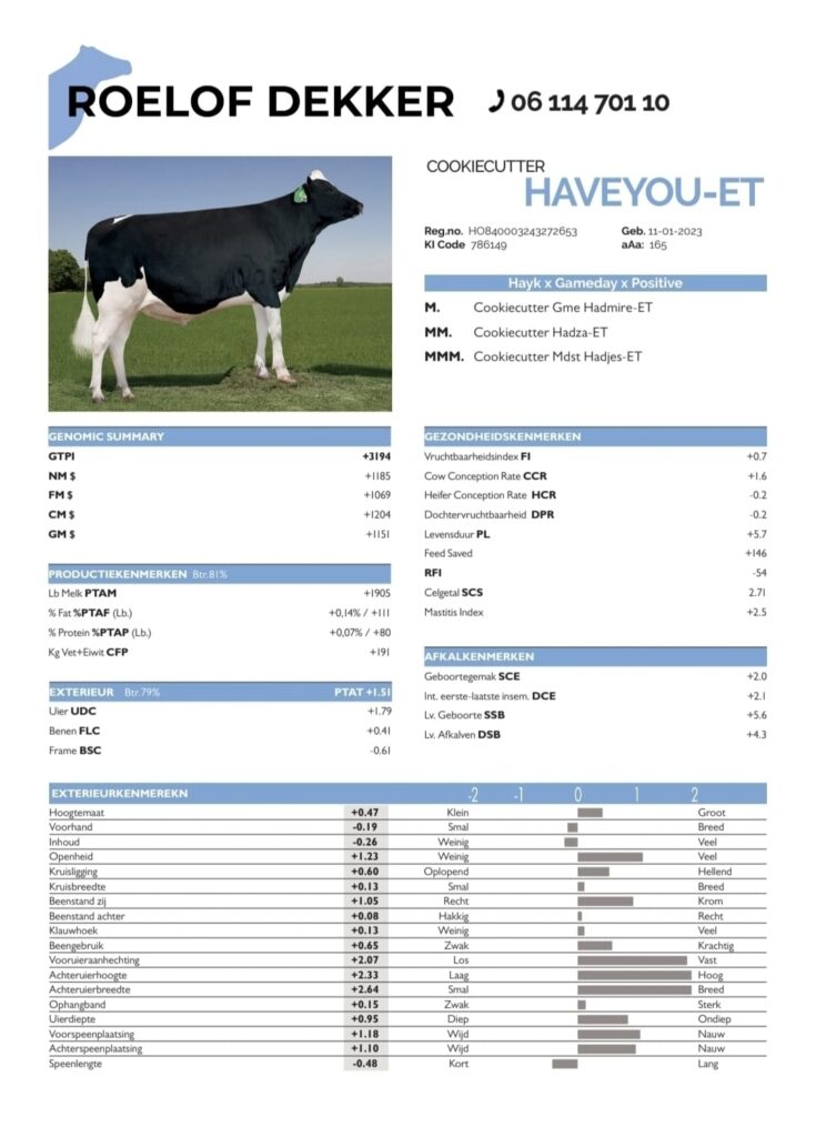 Cookiecutter Haveyou een Hayk zoon (Taos x Tahiti) x Gameday. GTPI 3194, NM 1185, PTAT 1.51, aAa 165