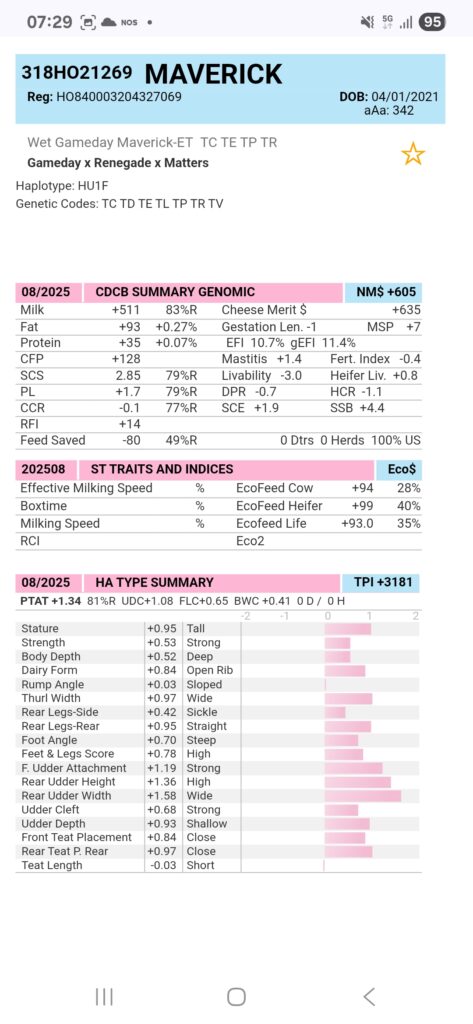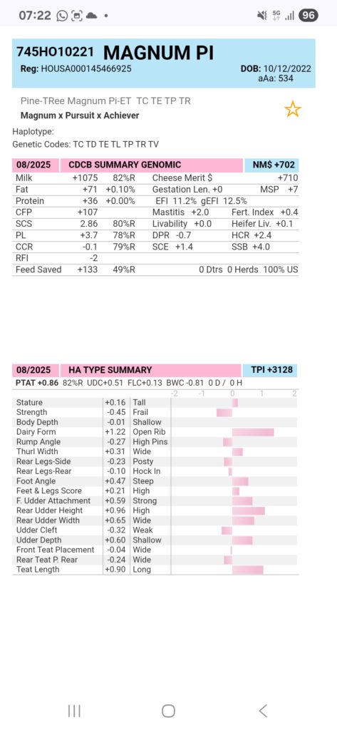 Deze week nieuwe cijfers voor de stieren Glax, Watson, Hearti, Maverick, Fakir P, Elias, Official, Magnum Pi, enz.