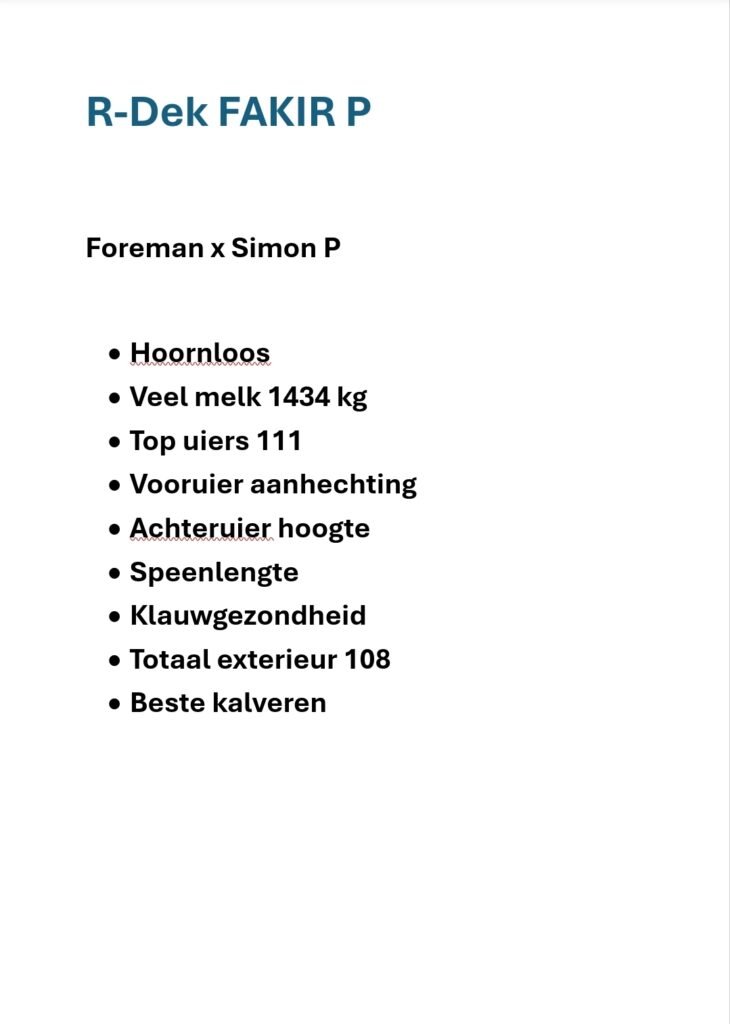 Hoornloos met melk en super uiers, Fakir P.