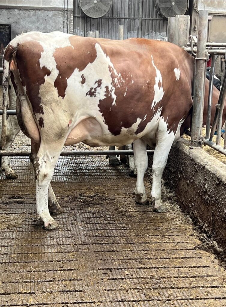 Geleverd als vaars, na een 1ste lijst van 305dg 13341kg 4,28 3, 58 120 LW nu op de keuring geweest. Nuberon x Monterey