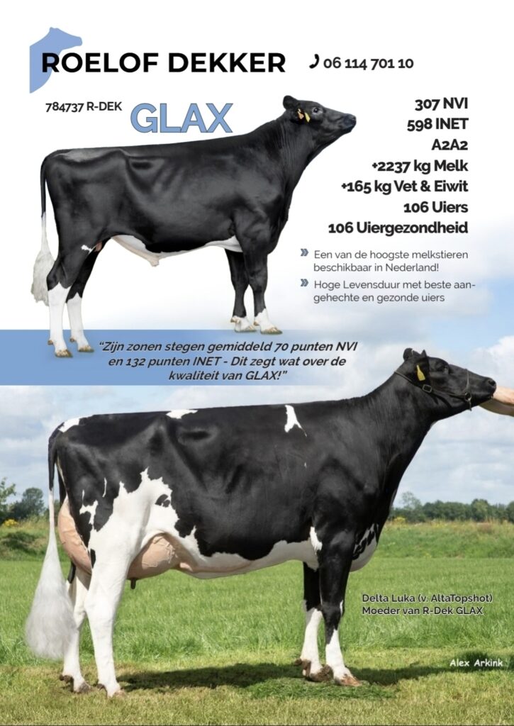 RDek Glax dochters beginnen aan de melk te komen. Sperma beschikbaar.